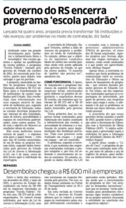 Segundo informações do Jornal Correio do Povo, em matéria de Flávia Simões, obtidas pela imprensa via Lei de Acesso à Informação, apenas 20 das 56 escolas anunciadas tiveram algum avanço nos projetos. Nas demais, nem mesmo a etapa de planejamento foi iniciada. Lançado em outubro de 2021 dentro do Avançar na Educação, o Escola Padrão se propunha a ser um salto de qualidade na rede pública estadual. Quatro anos depois, o que se vê é o completo abandono.